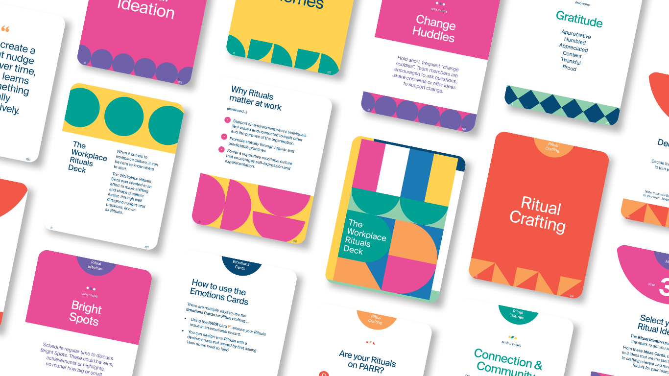 The Workplace Rituals Deck is a practical, easy-to-use tool with just the right amount of play to help teams craft rituals that shift and shape their culture.